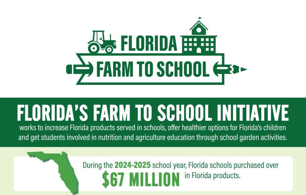 In the 2024–2025 school year, Florida’s Farm to School initiative made major strides in local commodity procurement, as schools spent more than $67 million on Florida-grown foods for school meals — from fruits and vegetables to dairy, beef and poultry.