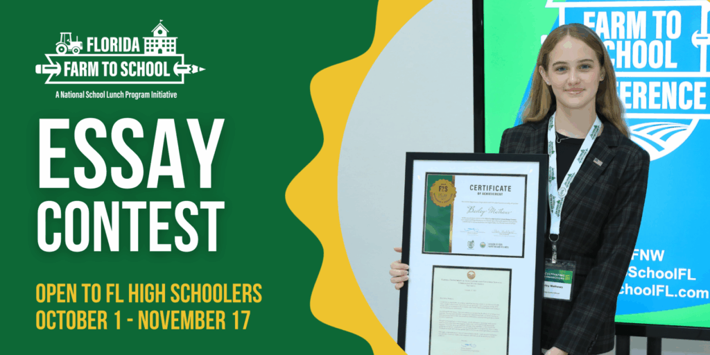 Calling all Florida high schoolers! Are you passionate about agriculture or nutrition? Or maybe you simply love to write? You can win up to $3,000 in college funds through the annual Florida Farm to School Essay Contest!